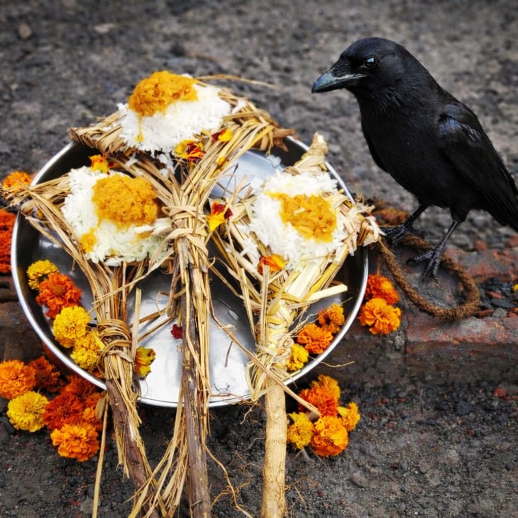 But why a crow? In Sanatan wisdom, crows are pitru-messengers, vehicles of Yama, bridging yugas and unseen realms. To feed them invokes ancestral peace, wards off calamity, and echoes Kashmir’s Trika philosophy: all existence is Shiva’s sacred play.