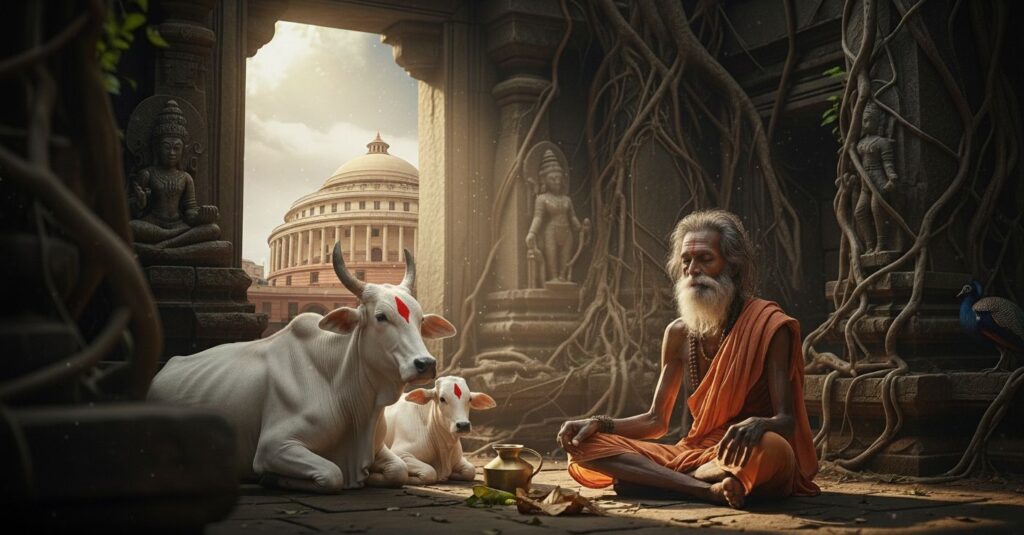 Before Indira Gandhi became Prime Minister, she visited Swami Karpatri Ji to seek his blessing. He told her, ‘Ban cow slaughter; make it your first act as ruler.’ Indira Gandhi agreed, and in that moment, a promise was made between them.
