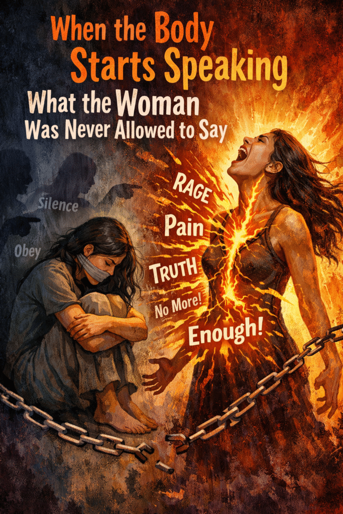 The anger she swallowed. The dreams she postponed. The grief she never named. All of it buried alive—not dead, just waiting. And now, as her hormones shift and her body changes, those emotions are clawing their way back. Not as words. As pain.